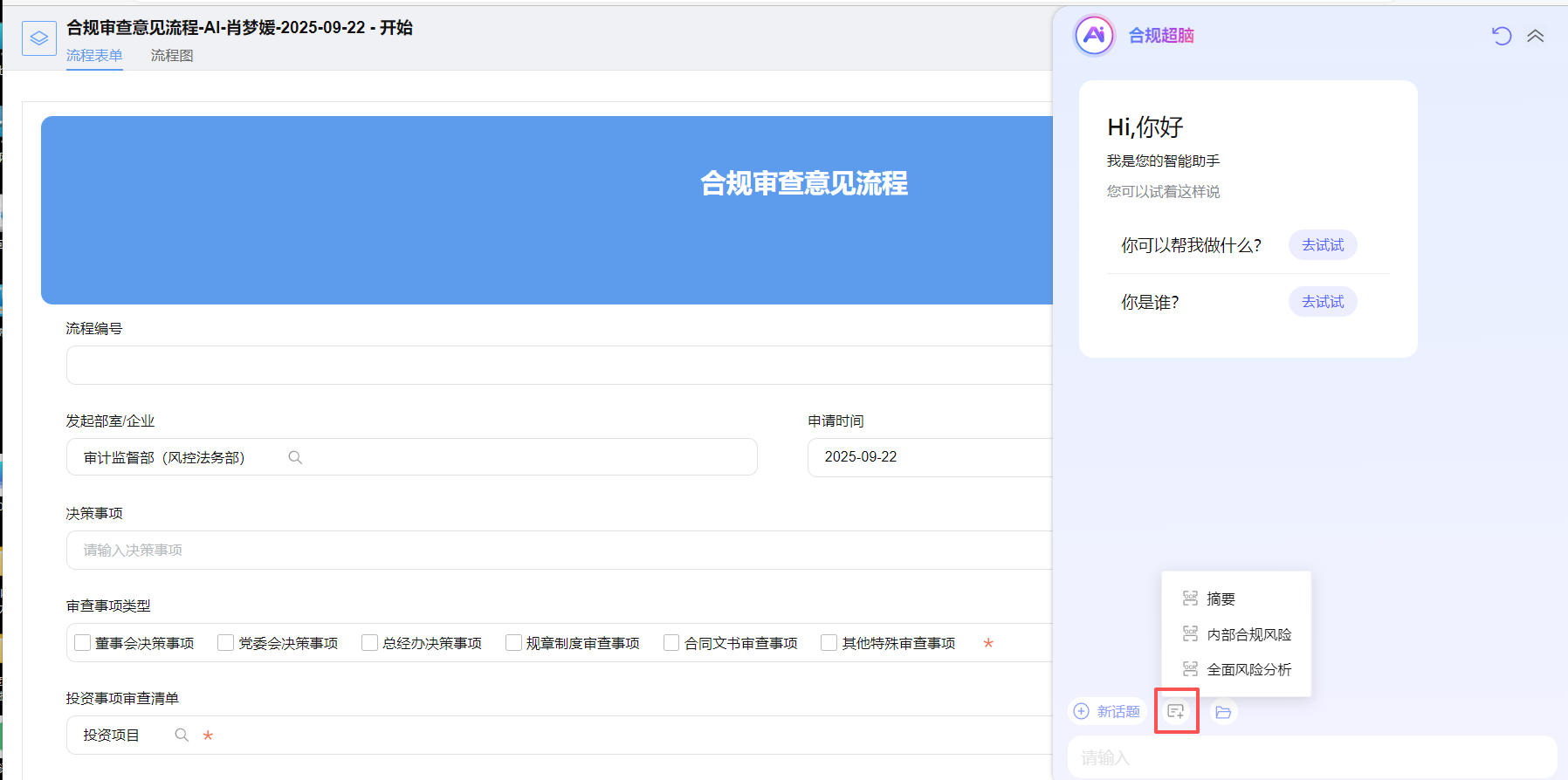 近日,球友会审计监督部(风控法务部)倾力打造的“合规超脑”成功接入集团OA。该项目是球友会今年“拥抱AI”创新大赛的首个落地成果,项目落地标志着集团的智慧风控迈入新阶段! 该平台依托多智能体协同架构,实现从合同到业务事项的合规和全面风险智能审查,具备四大核心能力: (1)极速概览:智能生成摘要,效率提升90% (2)双重风控:结合制度库与AI推理,覆盖显性与隐性风险 (3)合规问答:实时交互提问,快速输出审查结论 (4)文本纠错:自动排查错漏,杜绝低级错误 作为信创级私有化部署产品,“合规超脑”将实现审查效率、覆盖全面性与识别精准度的三重突破:审查耗时从小时级压缩至分钟级,风险识别覆盖显性条款与隐性逻辑,文本纠错与合规判断准确率显著提升,真正成为集团“六大提升行动”的高效、可靠、智能的合规基石!智慧风控,从此焕新!