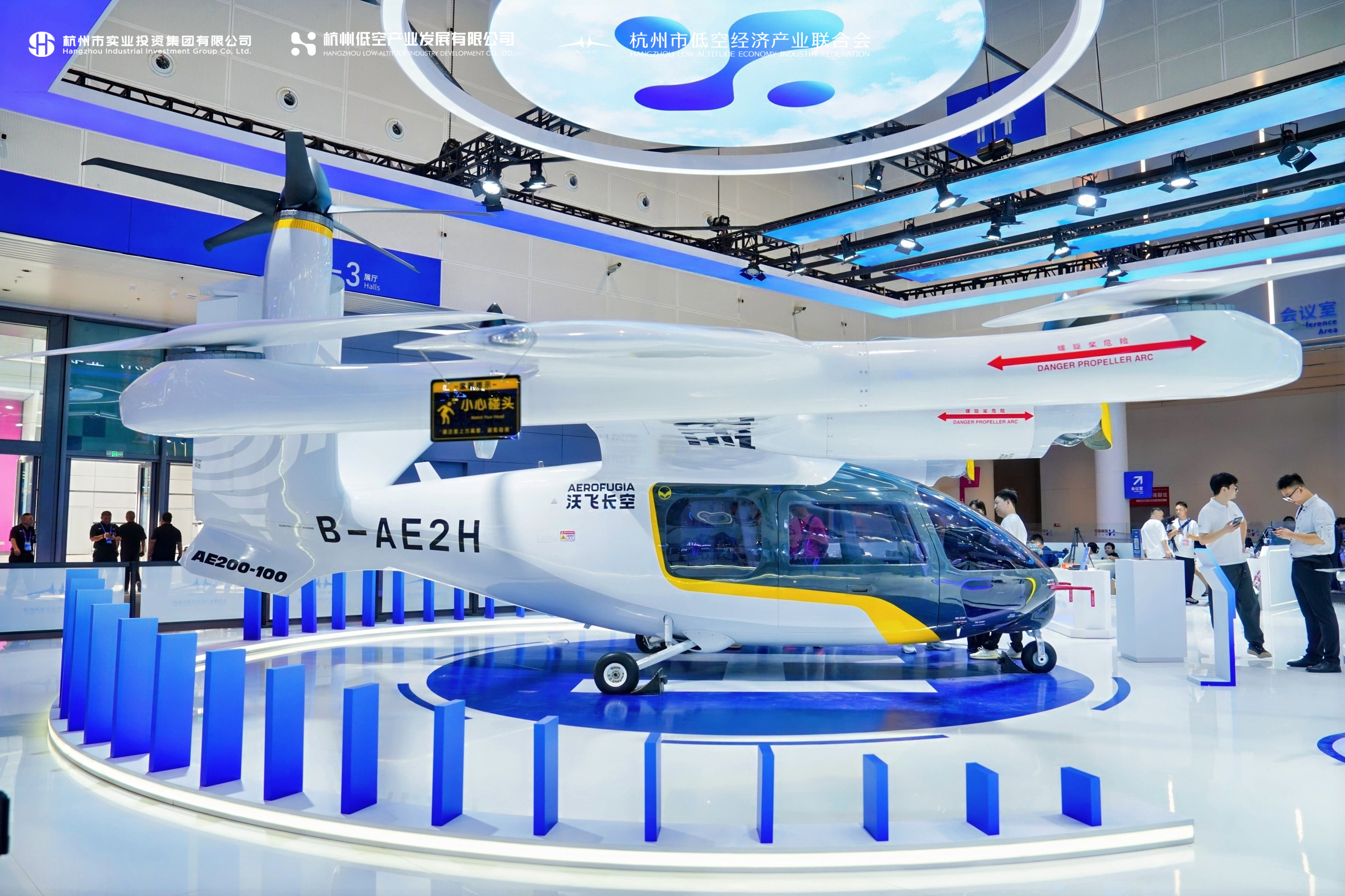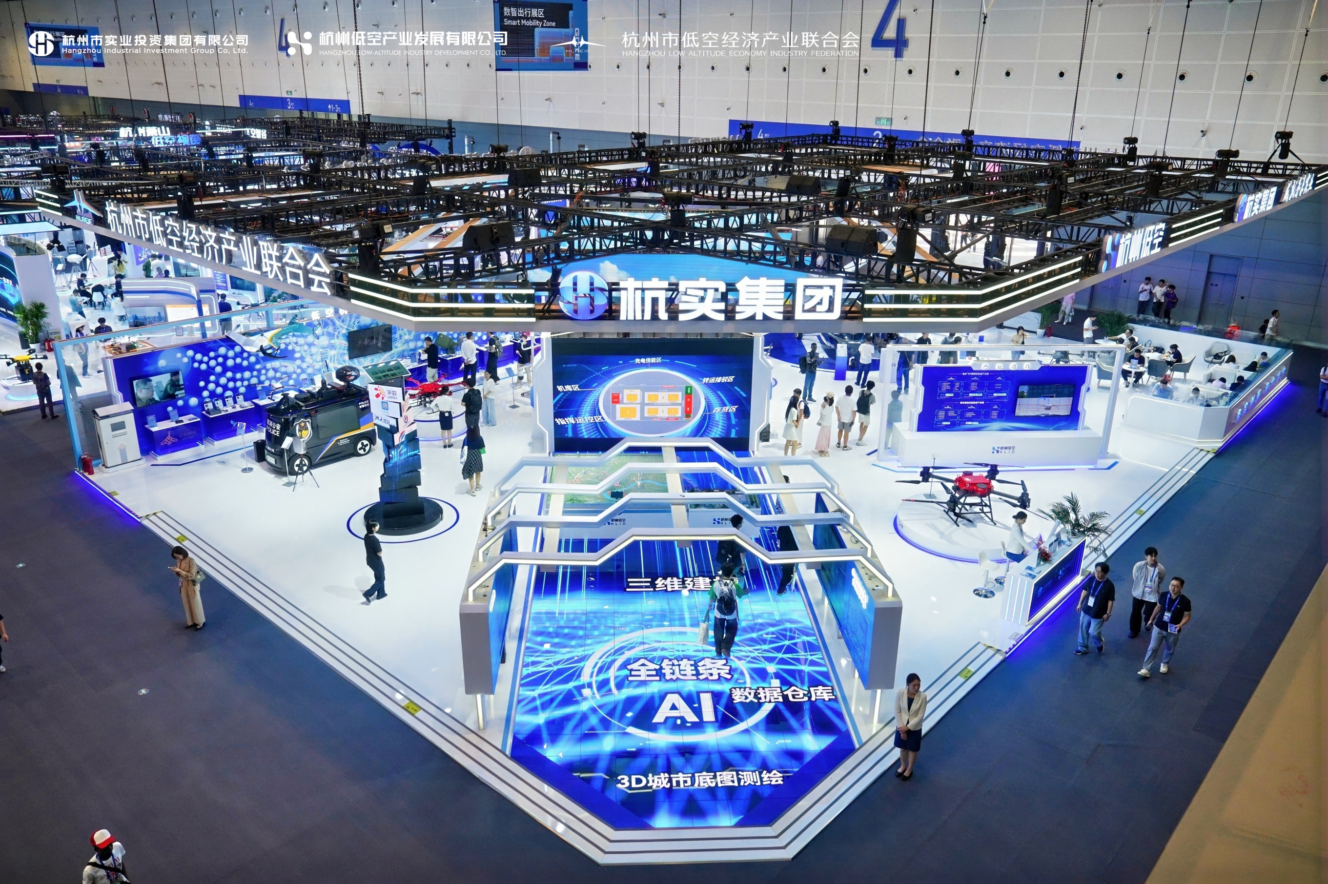 在低空基础设施板块,展区依托大型杭州城区沙盘立体动态演示杭州低空基础设施布局规划,参观者可看到已建成的梦想小镇、钱江世纪城等4个起降场;规划建设中拱墅区申花、上城区南苑、余杭区五常、滨江区海创基地、西湖区之江等11个起降场/点,以及多家企业运营的无人机航线网络。
